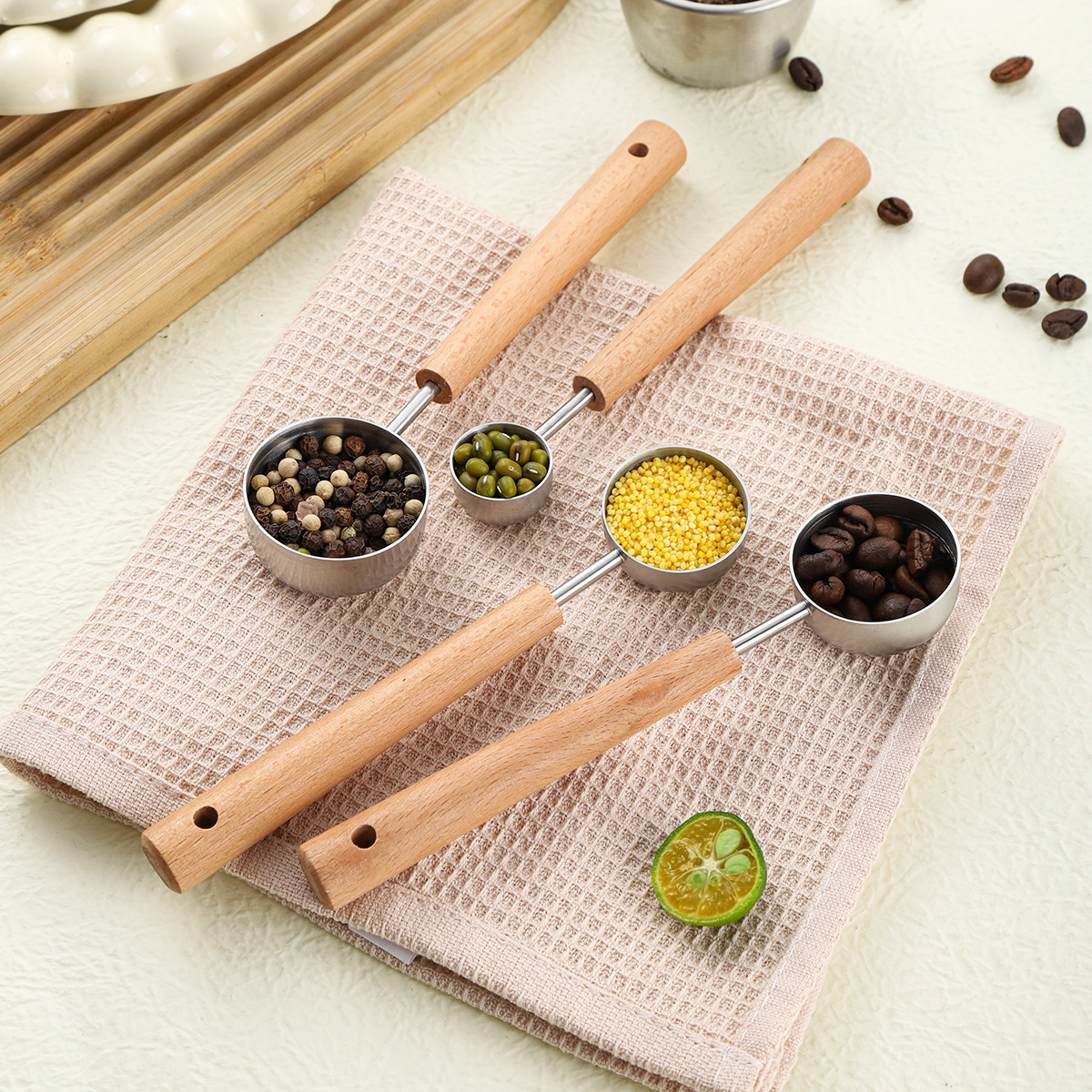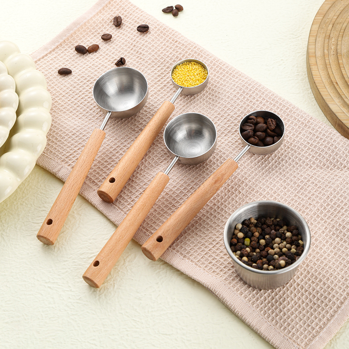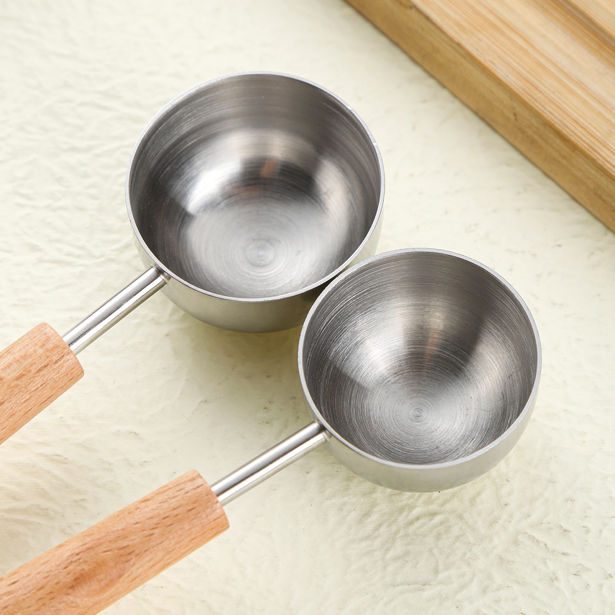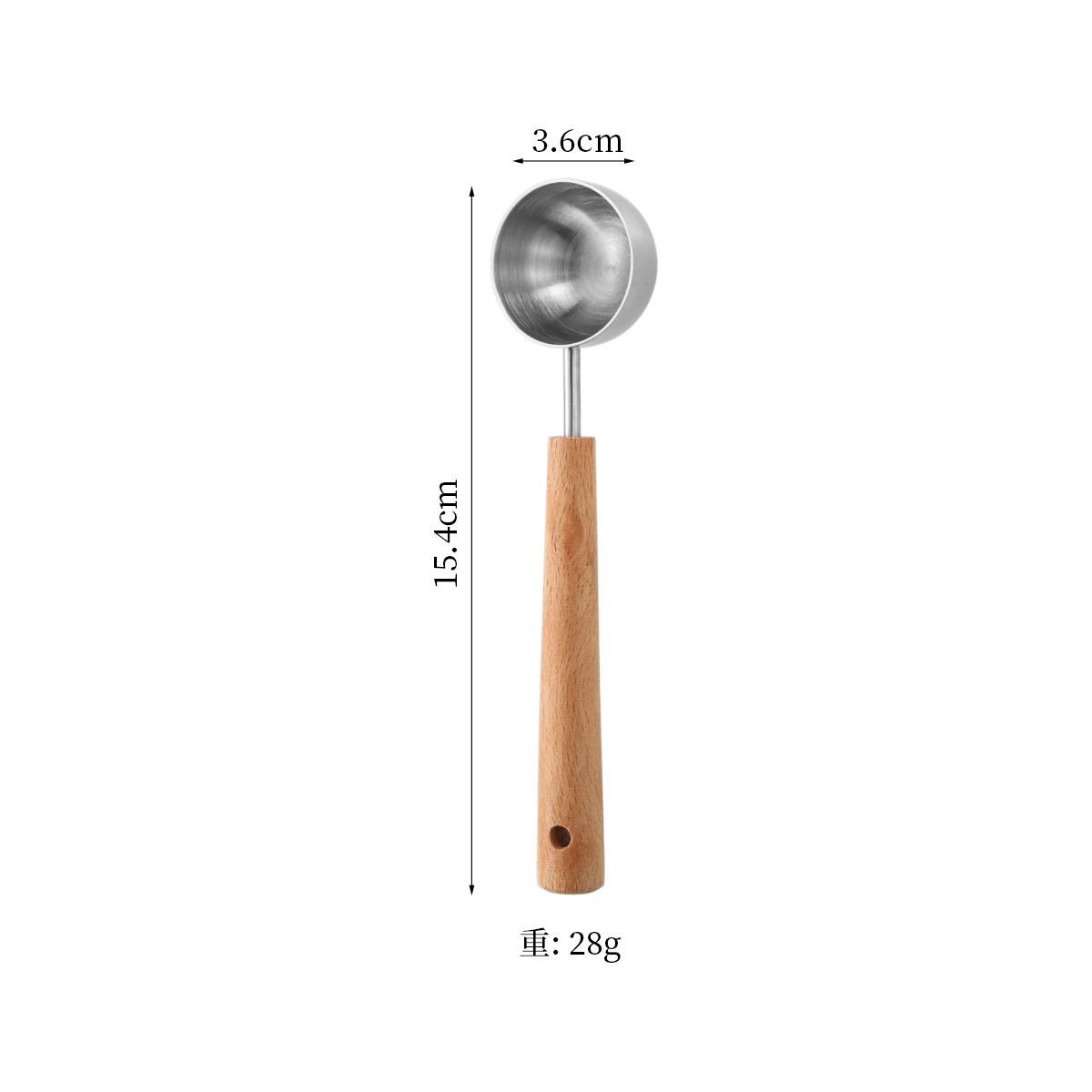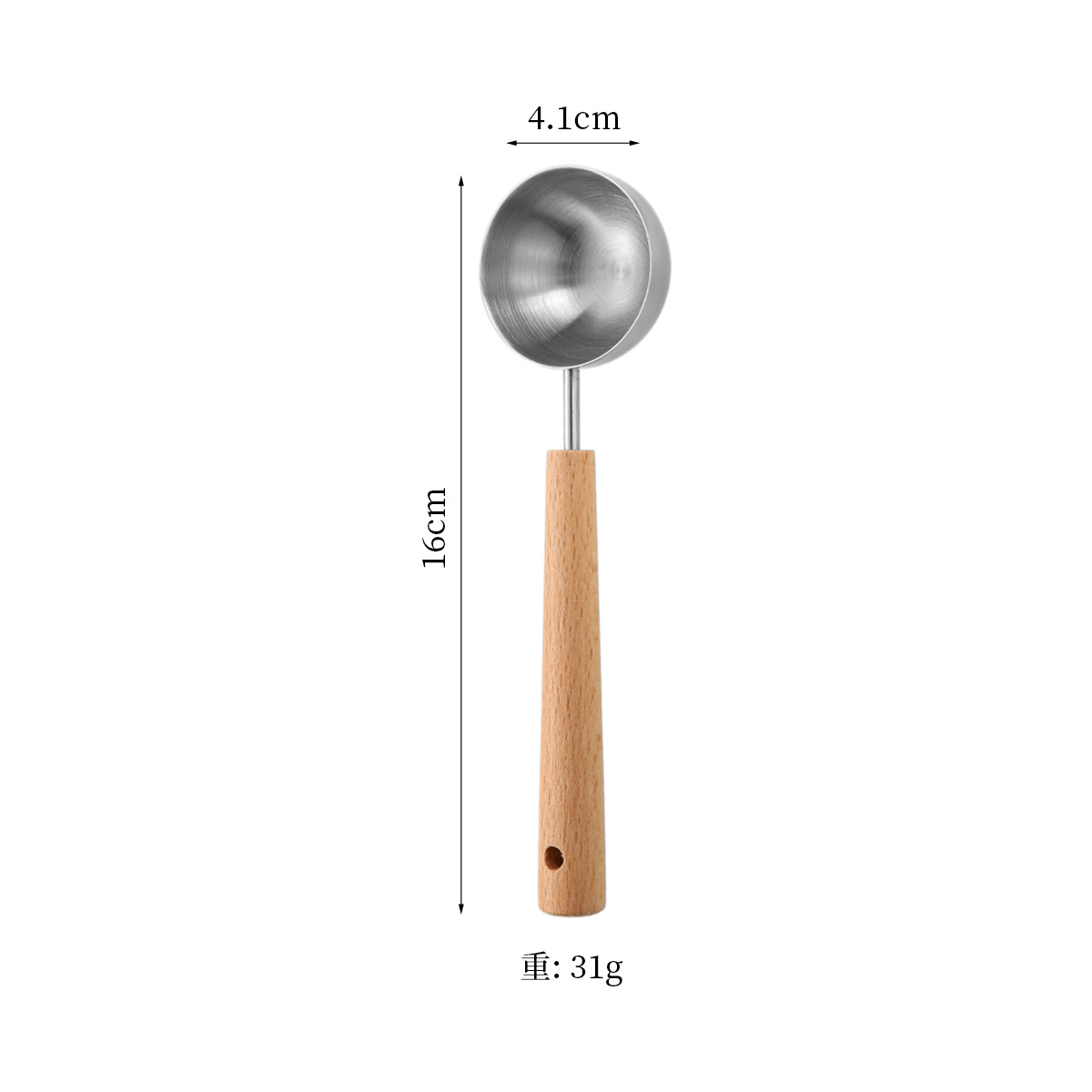 1pc Food Grade 304 Stainless Steel Measuring Spoon with Beech Wood Handle Coffee Bean Scoop Kitchen Baking Accessory Milk Powder Dosing Spoon Sanded Finish Fixed Quantity Spoon
