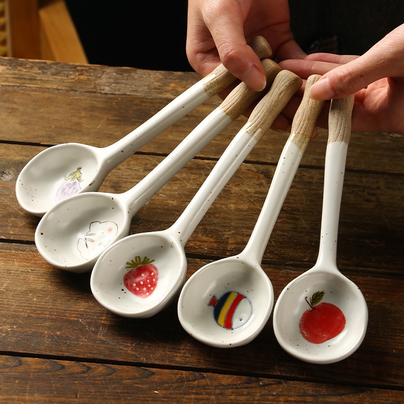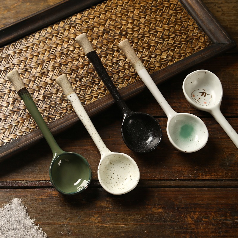 51pcs, Small Spoon, Household Creative Coarse Pottery Hand-Painted Ceramic, Rice Spoon, Dessert Spoon, Porridge Spoon